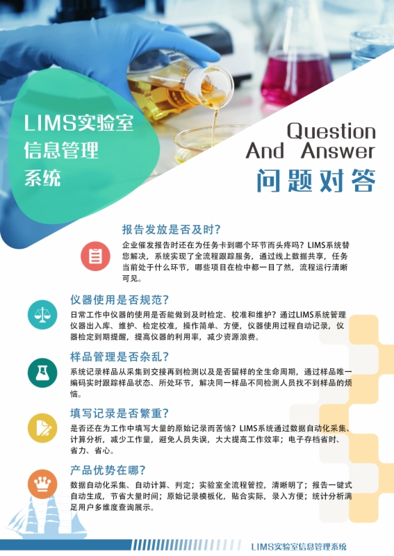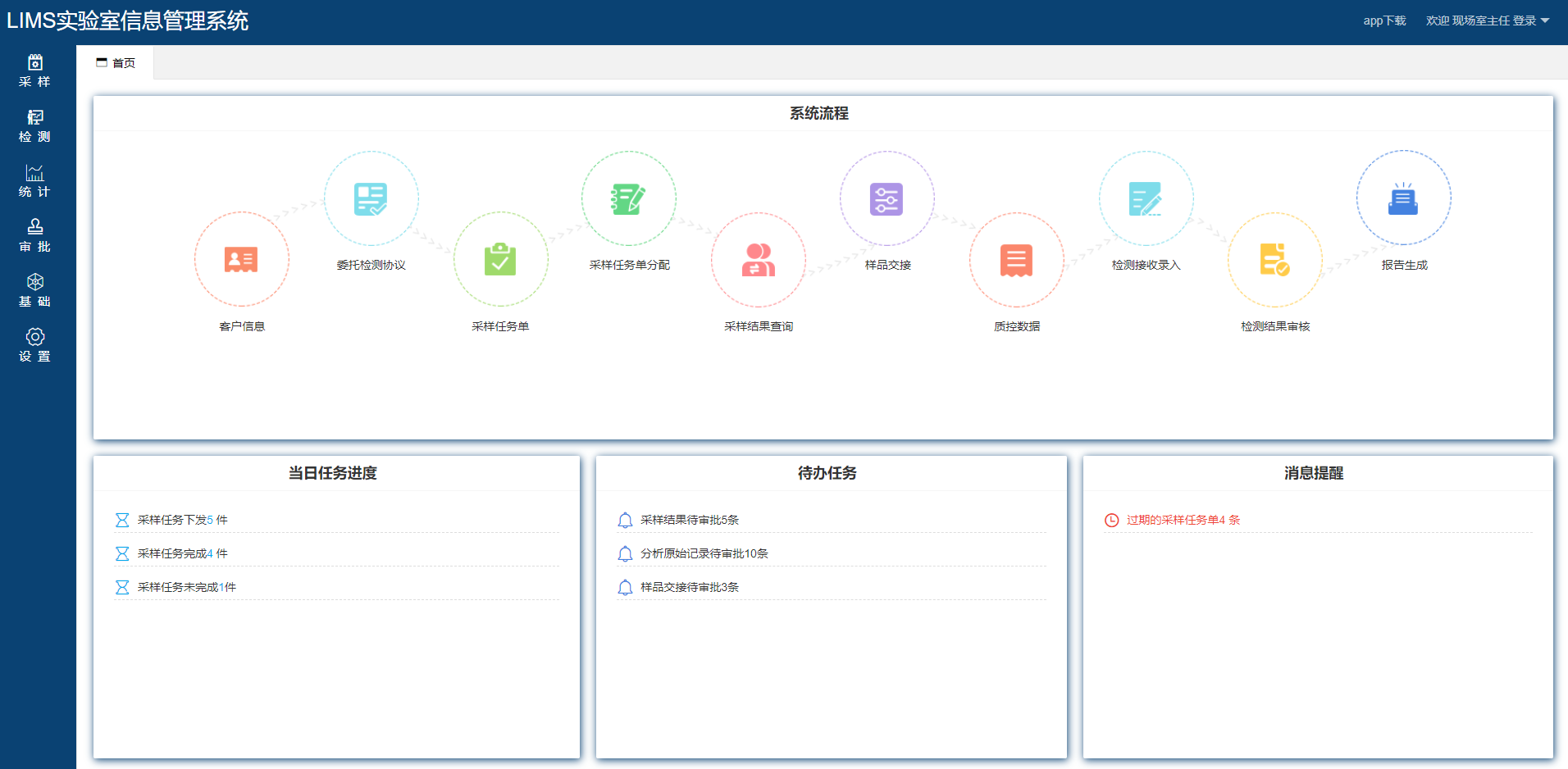 LIMS實(shí)驗(yàn)室信息管理系統(tǒng),是使用計算機(jī)信息化技術(shù)實(shí)現(xiàn)的實(shí)驗(yàn)室信息化解決方案,適用于第三方檢測中心、企事業(yè)檢測中心等機(jī)構(gòu)。系統(tǒng)遵循ISO/IEC17025《檢測和校準(zhǔn)實(shí)驗(yàn)室能力的通用要求》,符合RB/T 028-2020、RB/T 029-2020行業(yè)標(biāo)準(zhǔn),針對實(shí)驗(yàn)室的整體業(yè)務(wù)而設(shè)計,實(shí)現(xiàn)了基于人、機(jī)、料、法、環(huán)的全面質(zhì)量管理體系,能夠有效地提高實(shí)驗(yàn)室工作效率、管理水平和檢驗(yàn)質(zhì)量。以先進(jìn)的信息化技術(shù)代替?zhèn)鹘y(tǒng)的紙質(zhì)辦公,通過LIMS系統(tǒng)實(shí)時了解實(shí)驗(yàn)室檢測任務(wù)完成狀況,并及時處理異常情況,跟蹤了解工作人員的工作痕跡,做到有據(jù)可查、溯源可依、責(zé)任到人,嚴(yán)格確保每一個工作步驟按照標(biāo)準(zhǔn)流程進(jìn)行,每一個檢測任務(wù)符合質(zhì)量規(guī)范;對影響檢測數(shù)據(jù)和質(zhì)量的關(guān)鍵因素進(jìn)行嚴(yán)格管理和控制,使之符合實(shí)驗(yàn)室標(biāo)準(zhǔn)化管理規(guī)范要求,提升實(shí)驗(yàn)室整體業(yè)務(wù)水平、確保檢測數(shù)據(jù)準(zhǔn)確可靠、提高儀器設(shè)備使用率、控制和降低實(shí)驗(yàn)成本、完善實(shí)驗(yàn)室質(zhì)量管理體系。